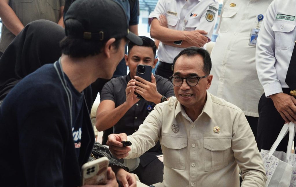 Selain menyapa para penumpang, Menhub juga membagikan takjil untuk berbuka puasa kepada para penumpang KA di stasiun Pasar Senen.
